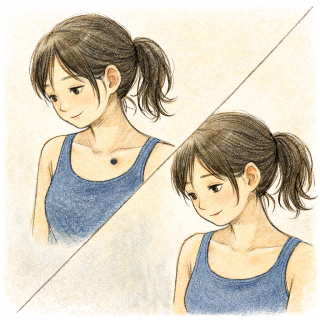 そして、翌朝どうなっていたと思いますか?昨日まで大きく硬かった粉瘤が、ぺたんと平たく小さくなっていたのです。天使は本当にいるのだと思いました。粉瘤はそれから日が経つごとにどんどん目立たなくなり、色も薄くなり、跡形もなくなってしまいました。